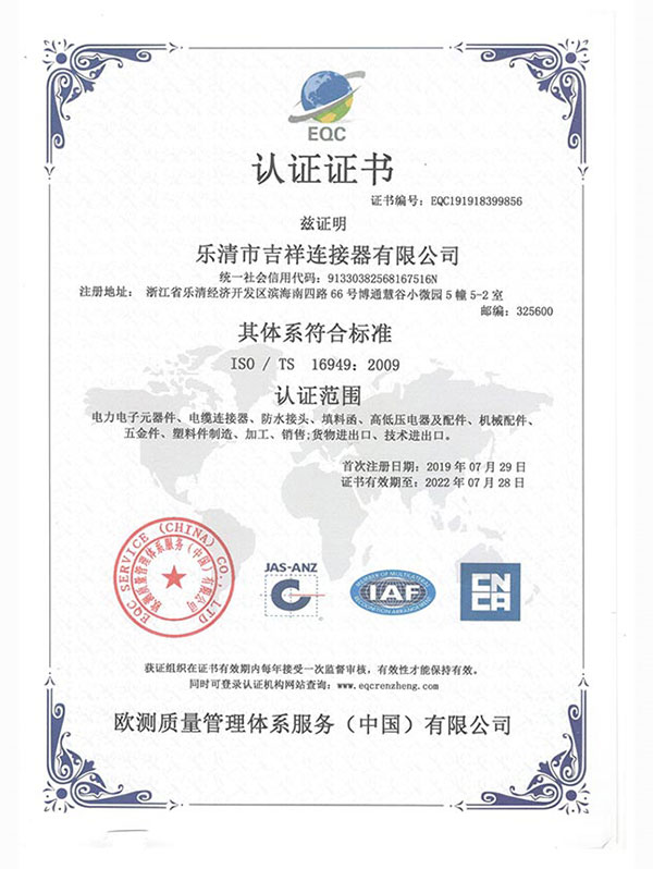 EQC認(rèn)證證書(shū)